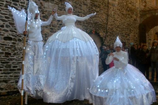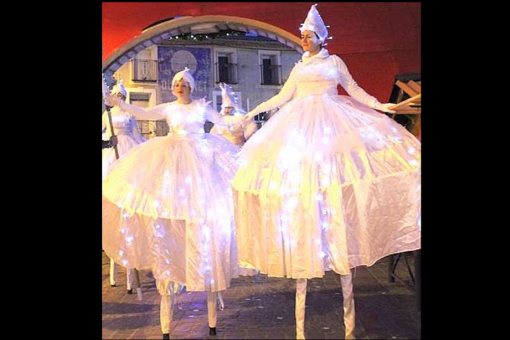 These graceful, gentle and wise people came to us from the kingdom of eternal ice. They sow to the four winds a multitude of snow flakes and crystals. 3-7 illuminated characters, accomapnied by an illuminated, musical float (wired for sound) with a costumed technician.
